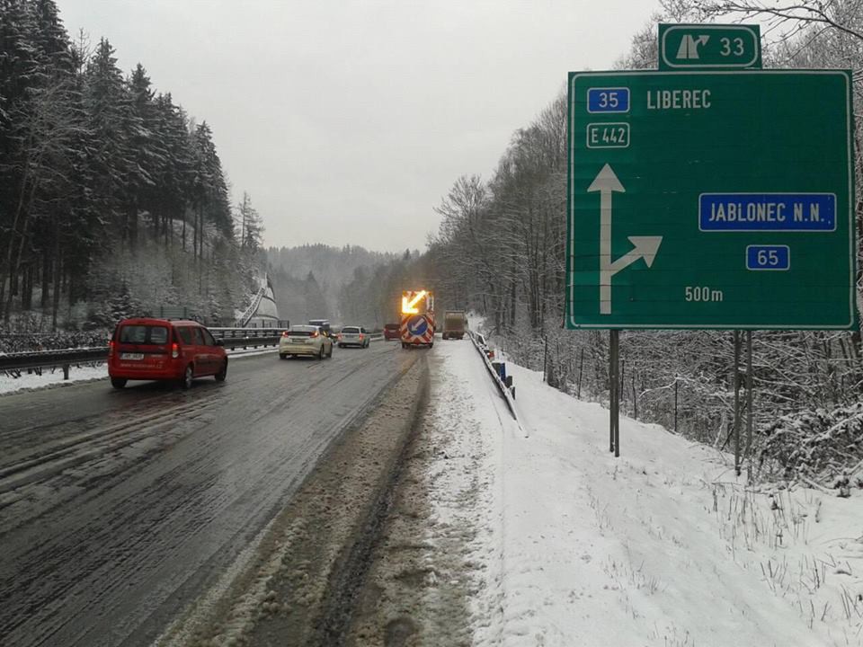 Uježděný sníh stále komplikuje dopravu na několika místech, pro kamiony jsou uzavřeny dvě silnice