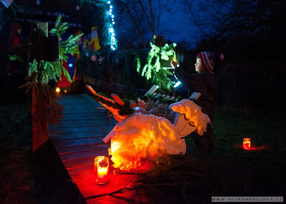 Originální betlém při Vánoční světýlkované