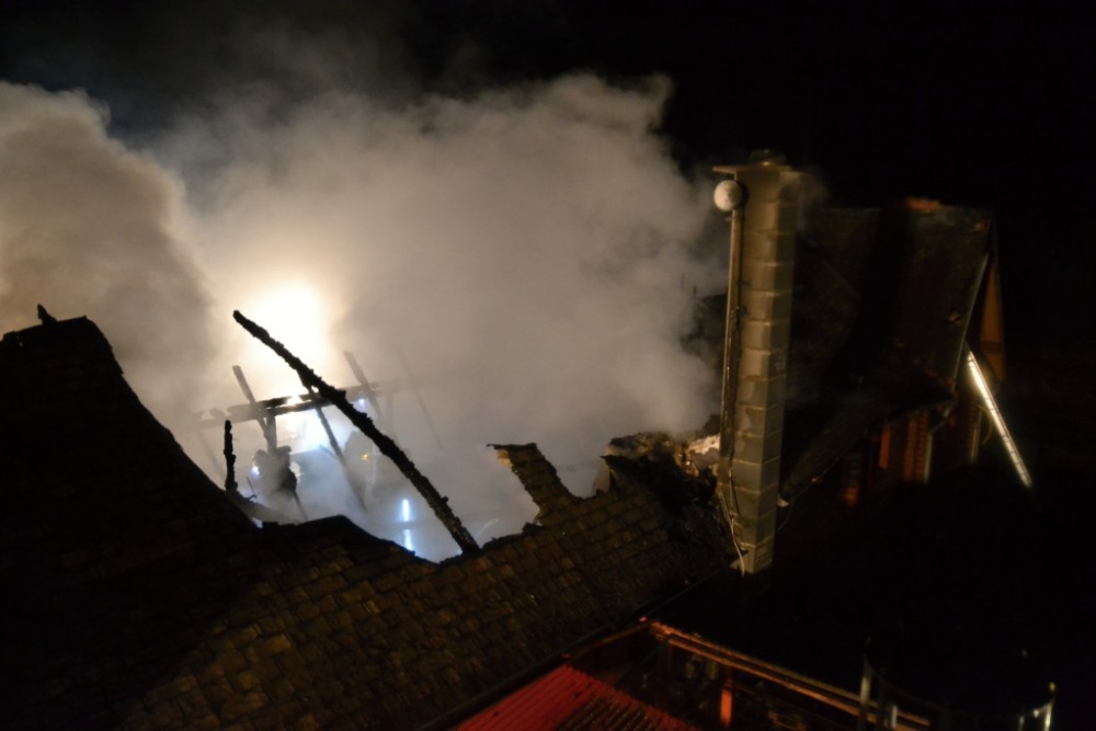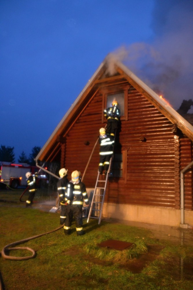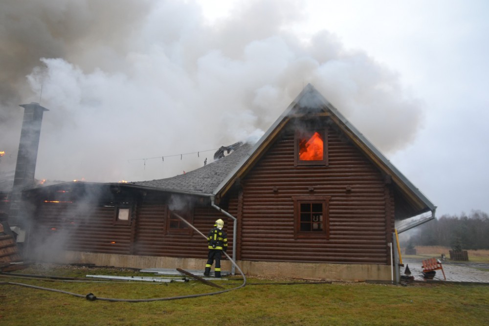 Deset jednotek hasičů zaměstnal požár srubu. Škoda je zhruba 5 milionů korun