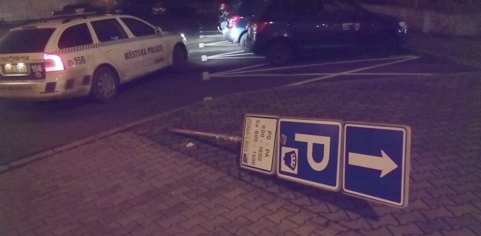 Vandal cestou na nádraží ulomil značku a ještě po ní skákal