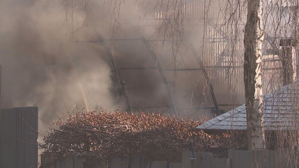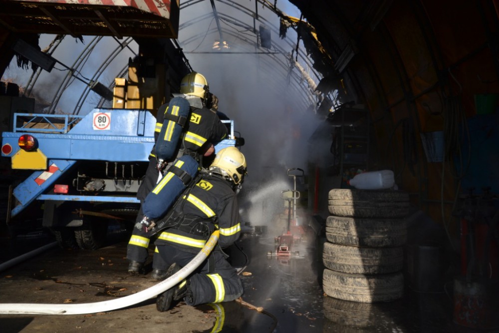 FOTO: Hasičům začal Silvestr požárem v Doubí. Hořela Avie a konstrukce haly