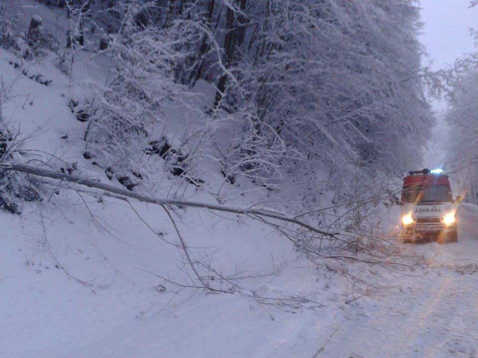 Mokrý sníh láme stromy, desítky domácností jsou bez elektrického proudu