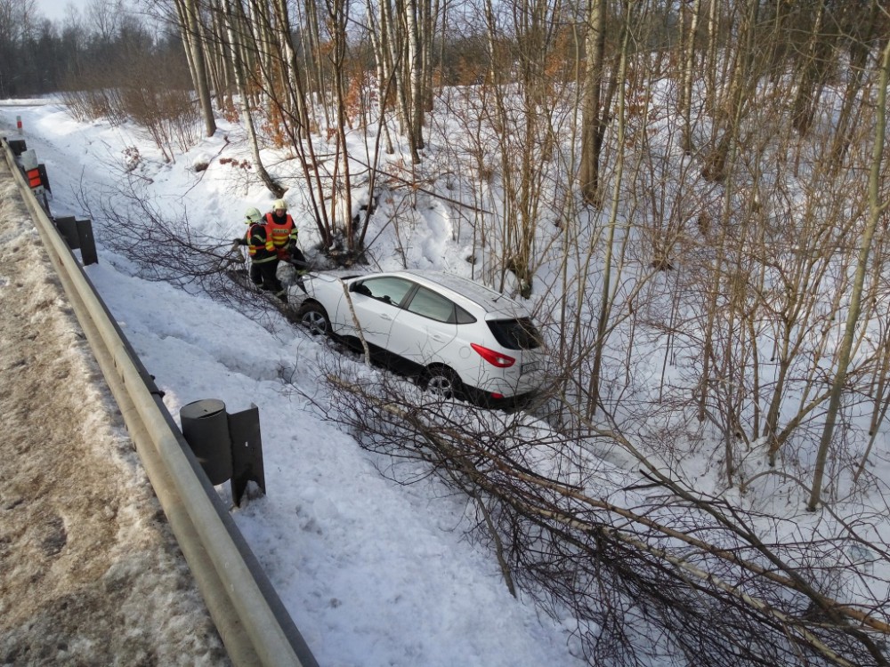 Hyundai skončil pod úrovní silnice, řidič těsně minul svodidla