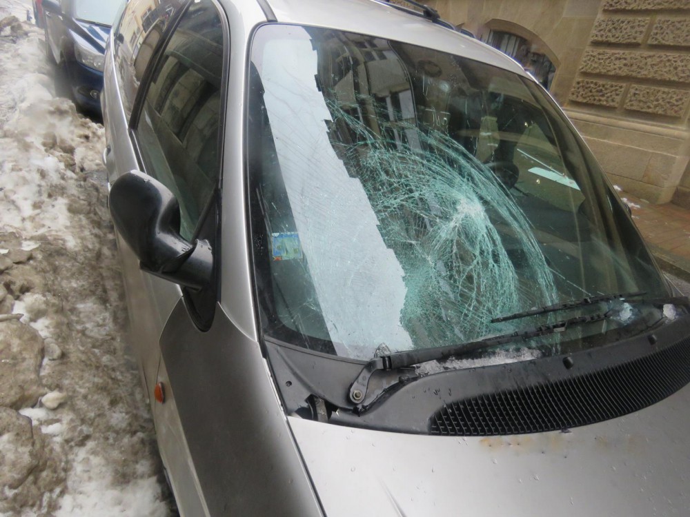 Ledy padající ze střech způsobily v Liberci během jediného dne desetitisícové škody na autech