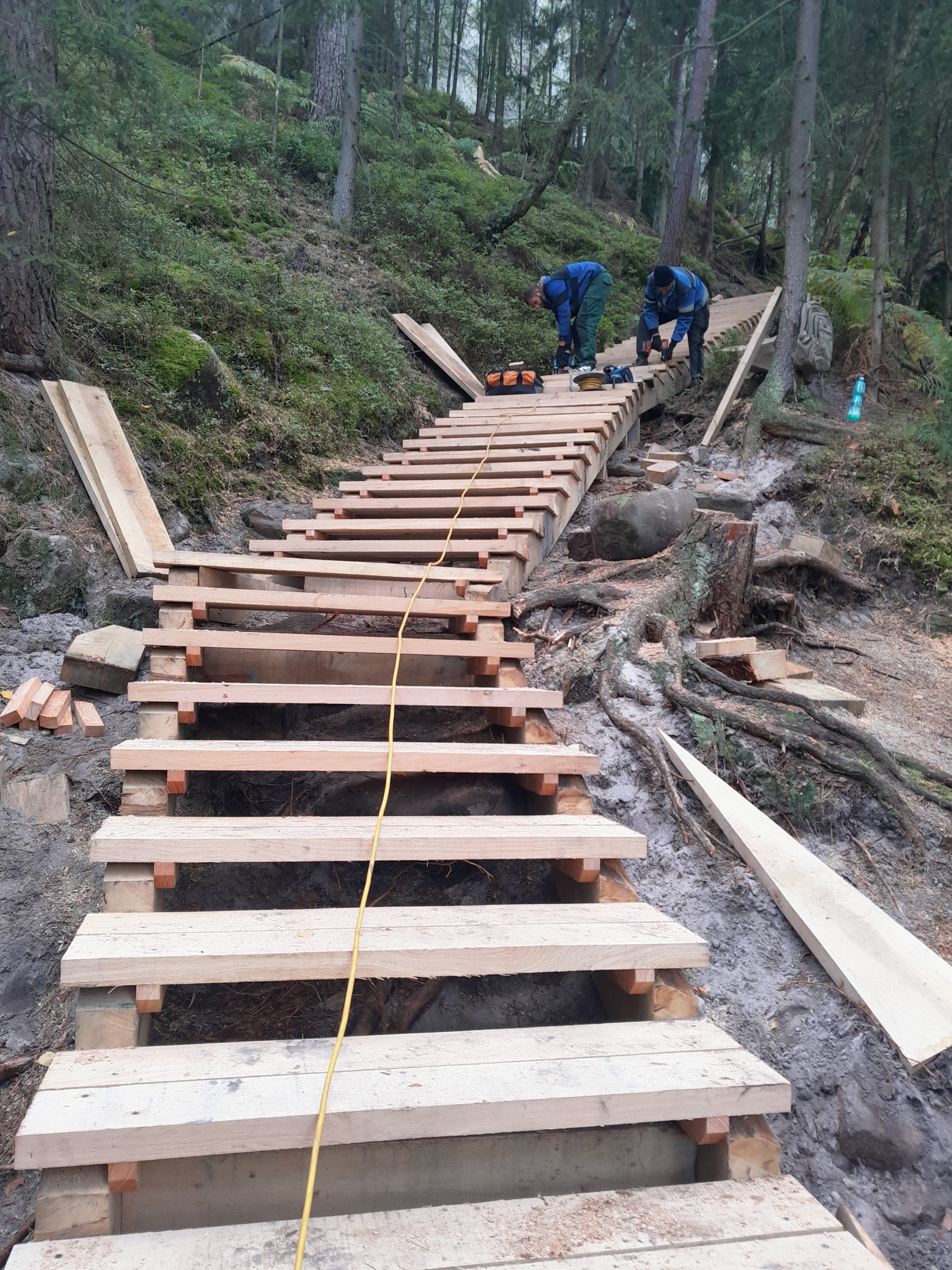 „Hojně navštěvované turistické stezky zde vedou náročným terénem s velkým převýšením, které i historicky turistům pomáhala zdolat různá schodiště. Některá z nich už vlivem času dosloužila a návštěvníkům cestu spíš znesnadňovala. Mimo jiné to vedlo i k obcházení těžce schůdných úseků, což zase vede ke vzniku nových pěšin a s tím související erozi půdy a dalšímu narušování okolí turistické cesty,“ uvedla CHKO Český ráj na svém facebookovém profilu.