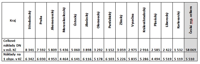 Celkové předběžné náklady dopravní nehodovosti a náklady na jednoho obyvatele v jednotlivých krajích a ČR celkem (zdroj: Centrum dopravního výzkumu, v. v. i.)