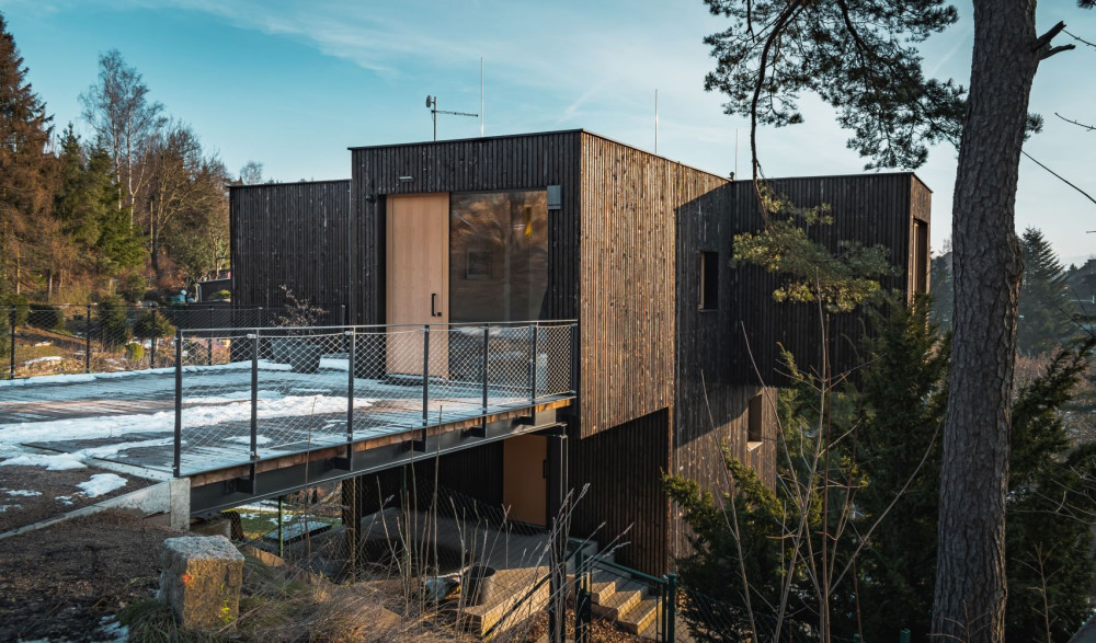 Z jedné strany je z ulice skoro neviditelný a působí jako malý domek, z té druhé, odvrácené jde o dům, který zaujme. U zahradní kolonie v Ruprechticích, nedaleko kostela Panny Marie u Obrázku, najdete Větrník. Rodinný dům zasazený ve svahu, postavený podle projektu studia atakarchitekti.