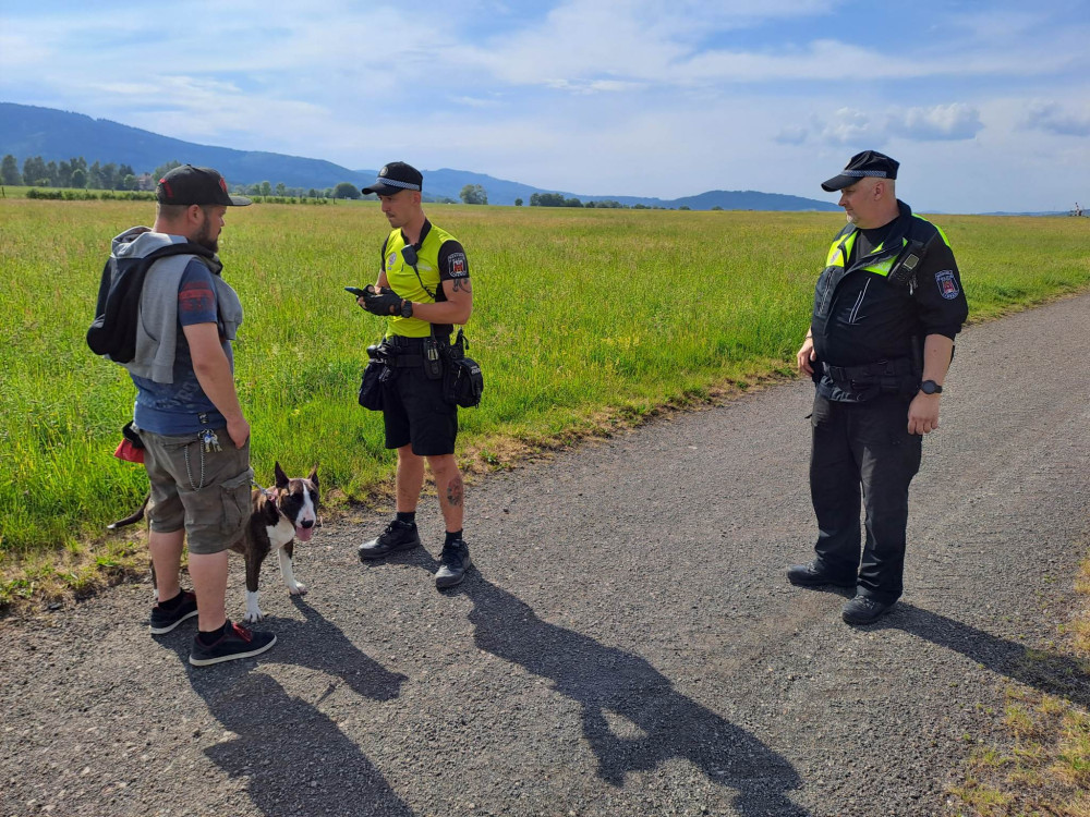Kontrola se tentokrát odehrávala v Ostašově, kam majitelé psů chodí rádi venčit psy na letiště, kde je také městskou vyhláškou vymezený jeden z prostorů vyhrazených pro volné pobíhání psů.