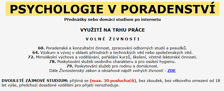 Jiří Adamec však na svém webu přímo radí, pod jakými volnými živnostmi lze psychologické poradenství poskytovat, i když k němu člověk nemá odbornou způsobilost. Mezi doporučenými oblastmi je například „poradenská a konzultační činnost“ nebo „poskytování služeb osobního charakteru“.