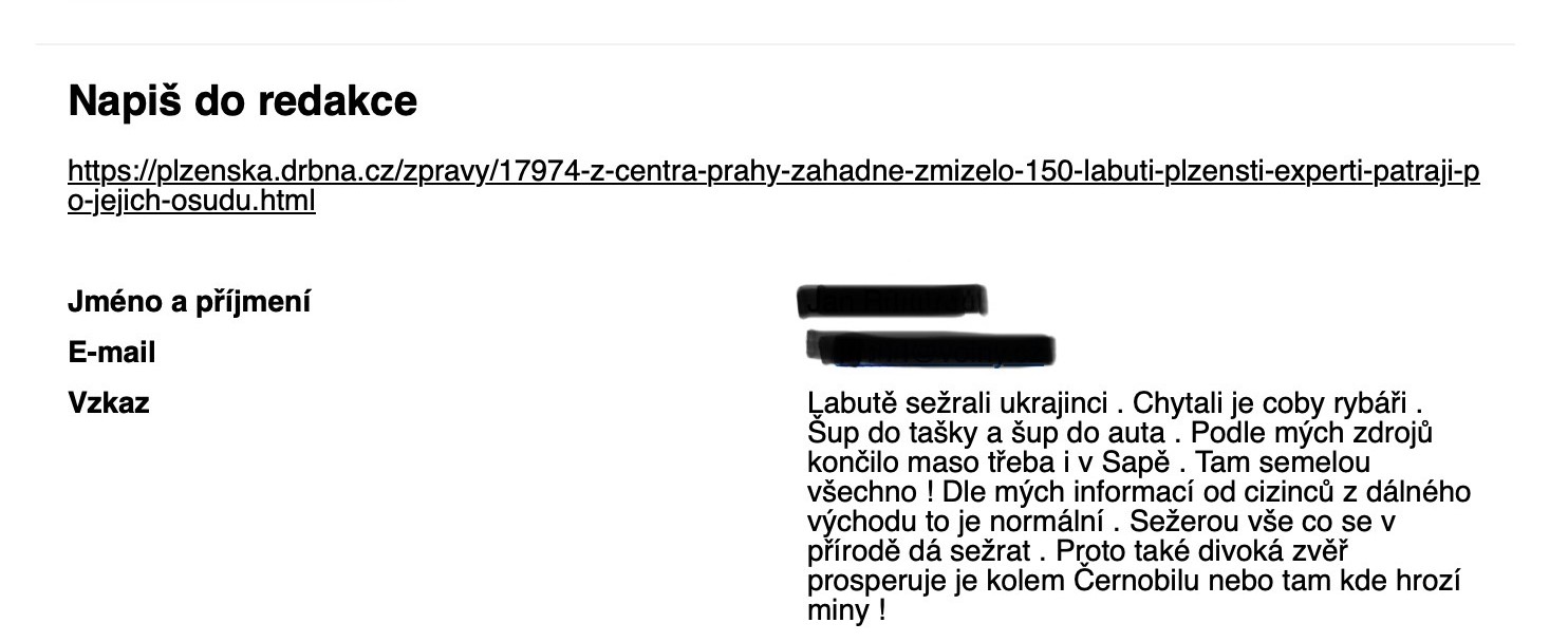 „Rád bych zdůraznil, že častými klienty naší záchranné stanice jsou právě Slováci nebo Ukrajinci, kteří k nám chodí s různými případy. Tyto národy mají k přírodě výrazně blíž než naši občané. Máme informace i od pražských bezdomovců, kteří toho ví mnohdy velmi hodně a sledují, co se kolem nich děje. Hlásili nám například kachnu s poraněným křídlem, kterou tam krmí. Nikdo tady není na tom tak špatně, že by musel někde v kotli vařit labuť. Minimálně by se někde objevilo alespoň peří, že se na těch místech něco dělo. A ani to se nestalo,“ dodal Karel Makoň.