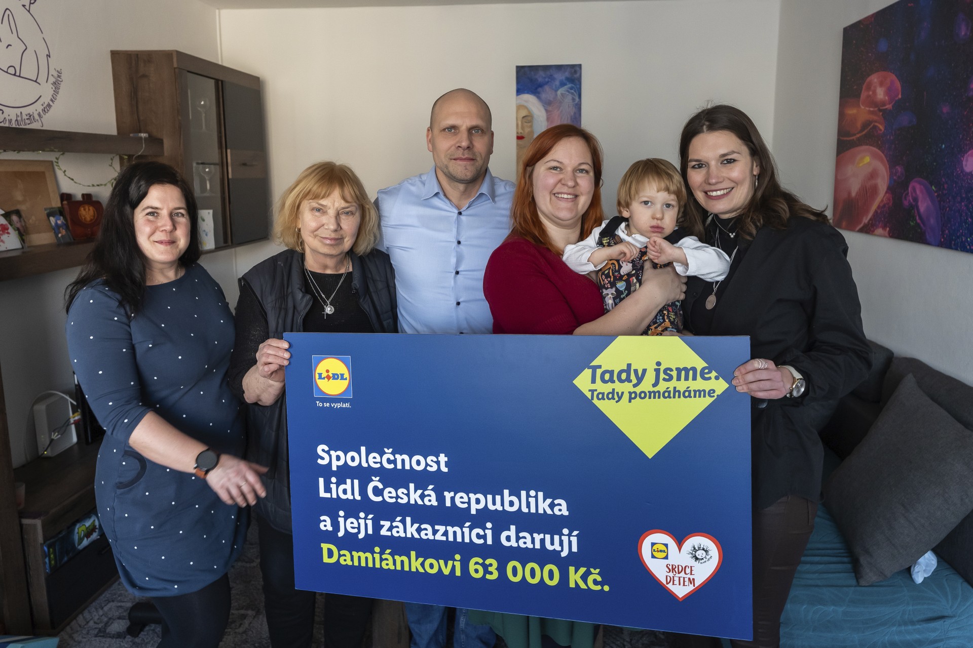 Symbolický šek na 63 tisíc korun předali zástupci za Lidl Česká republika regionální manažer Leoš Polák a manažerka liberecké prodejny Ilona Lehmdenová. Tyto prostředky pomohou uhradit náklady na Damiánkův ozdravný pobyt. „Jsem nesmírně vděčná všem laskavým lidem, kteří sbírku Srdce dětem podporují. Celodenní péče o syna je velmi náročná jak finančně, tak psychicky, ale s láskou a pomocí dobrých lidí se dá všechno zvládnout,“ uzavírá maminka malého chlapce.
