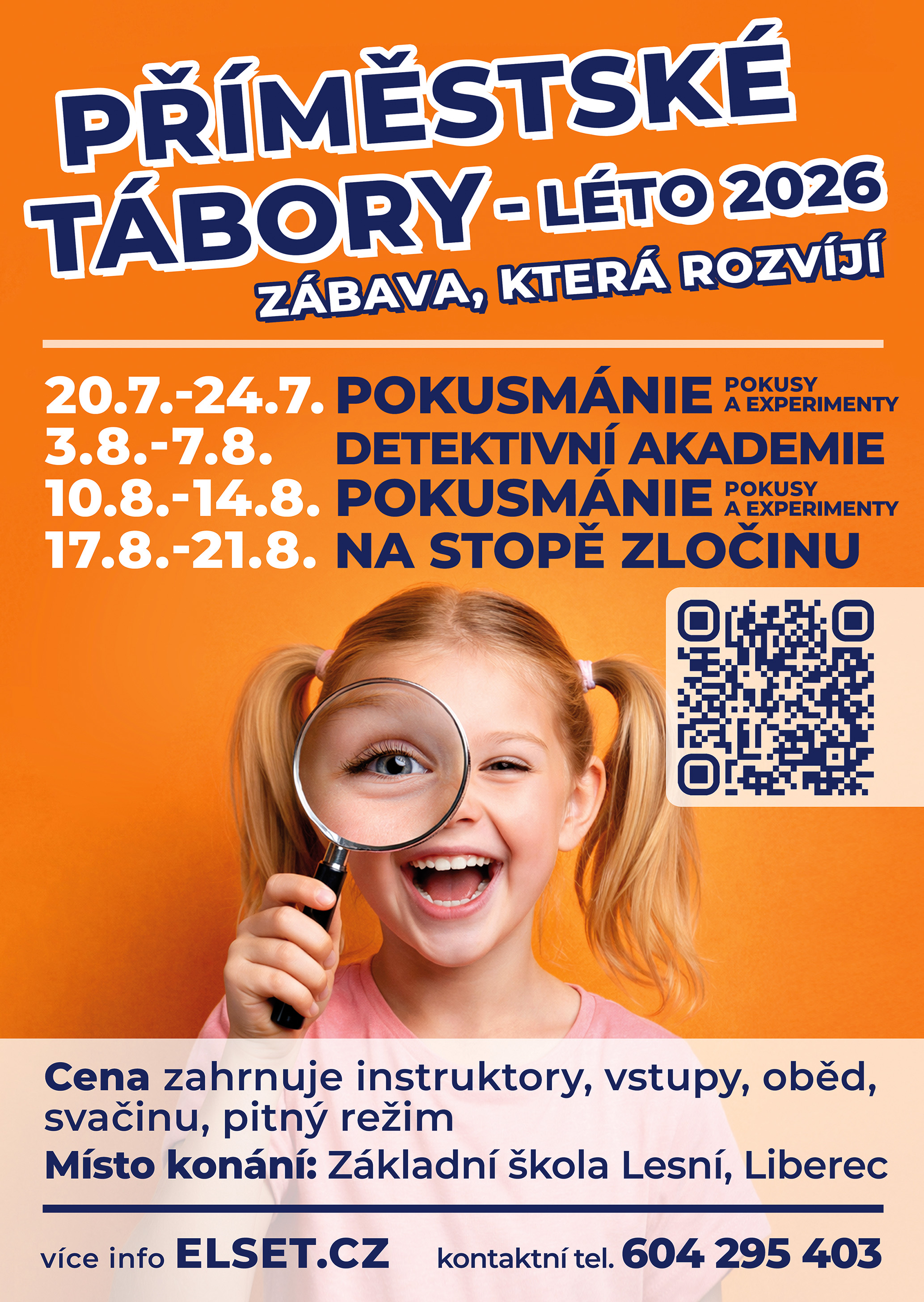 Příměstské tábory od Elsetu se i letos vrací do Liberce a nabídnou čtyři tematické turnusy pro děti od 6 do 12 let. Program kombinuje sport, tvoření i vzdělávací aktivity a koná se během letních prázdnin v prostorách základní školy Lesní.